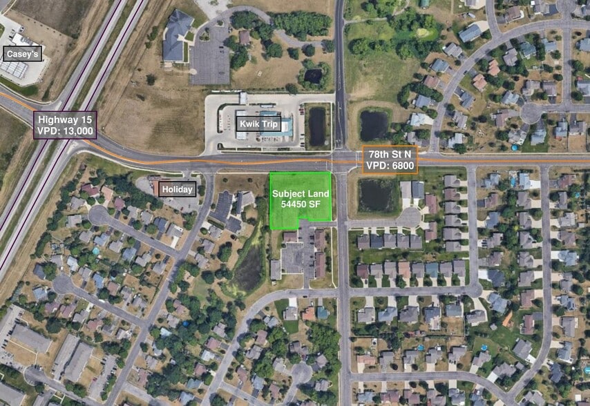 Terrain au coin de la rue en face de Kwik Trip Accès facile à l'autoroute 15