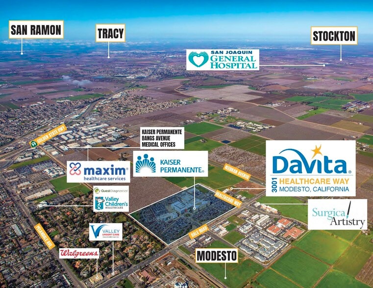 - The Property is strategically located directly across the street from Kaiser Permanente’s Modesto Medical Center Campus in Modesto.
