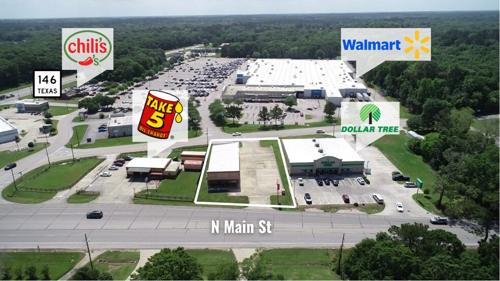 Building Size: 4,400sf Lot Size: 0.51 Acres ±10,000 VPD on N Main Excellent visibility near Hwy 146 intersection and Walmart Supercenter 21 Parking Spaces Utilities on site High growth area Renovated in 2024 2 road access Outside of all flood zones