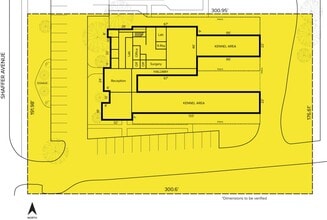 The property is located on Shaffer Avenue SE in Kentwood, Michigan, near 28th Street SE and Broadmoor Avenue. It is positioned within a developed commercial and industrial area with proximity to major transportation routes, including I-96. The site includes a single-story structure with designated areas for reception, labs, surgery, and kennels, as shown in the site plan. Outdoor fenced areas are present, and the property includes a private courtyard.