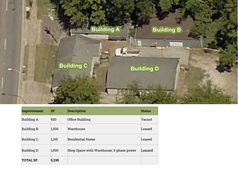 Investment opportunity includes two office/residential buildings and two storage buildings comprising 5,235 sf and situated on 0.37 acres.