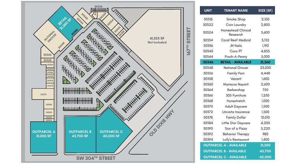 Dixie Center 30200-30394 Old Dixie Hwy 21 360 pi² d'espace disponible • Commerce de détail • Homestead, FL 33033