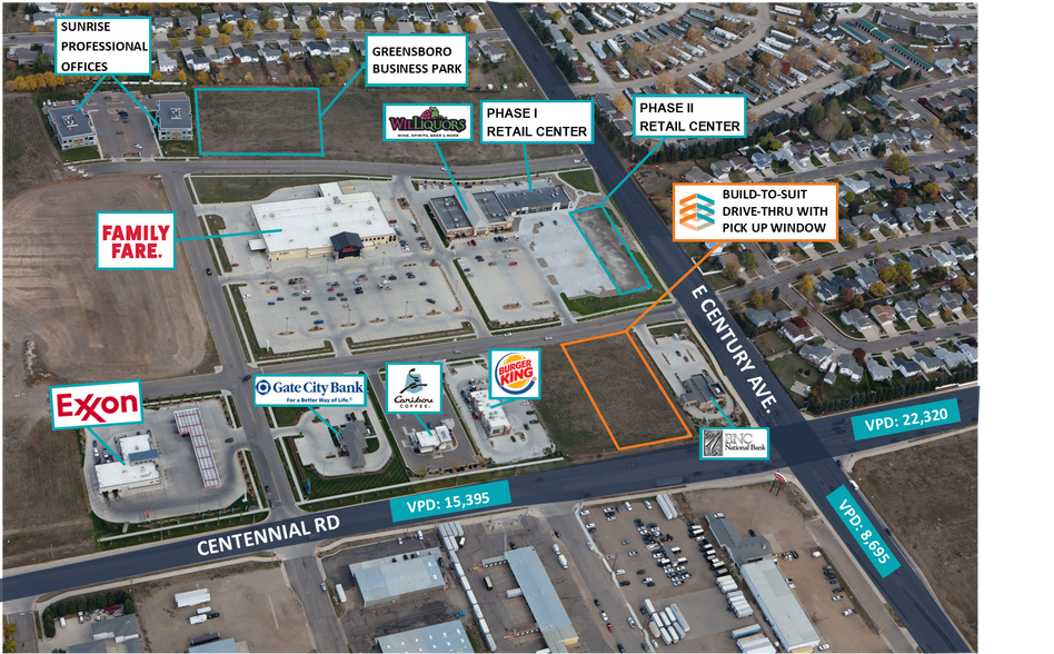 Conçus sur mesure avec possibilité de conduite directe offerte sous forme de deux unités distinctes ou d'une grande unité située dans la zone de croissance East Bismarck, au nord de la sortie 161. Les points d'ancrage de ce développement comprennent une épicerie nationale, un grand magasin d'alcool local, des services professionnels, des restaurants et des banques ainsi qu'une station-magasin. Développeur local sur mesure pour l'utilisateur final. Une demande de bail peut être nécessaire. FAITS SAILLANTS Fortes données démographiques Excellent nombre de trafic Construire sur mesure Près de l'Interstate 94, sortie 161 Carrefour commercial et zone de croissance résidentielle en plein développement À proximité de l'école secondaire Legacy et de l'école élémentaire Sunrise