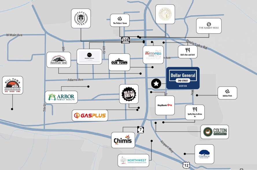 The store is located near the intersection of US Highway 12 and State Route 7, right in the heart of Lewis County. It benefits from strong visibility and easy access, and it sits along a key route for travelers heading toward Mount Rainier and Mount St. Helens. With steady year round tourist traffic and local residents relying on it for everyday needs, the location supports consistent demand. Morton serves as a commercial hub for the surrounding rural communities. The area includes a mix of local businesses and regional employers such as Hampton Lumber and TMI Forest Products, along with Arbor Health Morton Hospital, which brings regular daily traffic. Overall, the combination of local industry, healthcare presence, and tourism helps support long-term retail stability at this location.