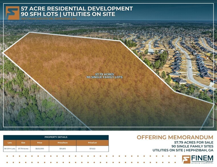 3047 Manchester Drive - 57 AC Residential Development | 90 SFH Lots Lot • Terrain commercial • 57,79 Acres • 843 081 $ CAD • Hephzibah, GA 30815