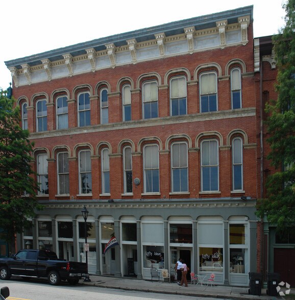La propriété est dotée de planchers en pin de cœur, de toits en pente et récemment recouverts, d'un extérieur en maçonnerie, de plafonds à rainures et languettes, d'un système de gicleurs d'incendie récemment installé mais non connecté, d'un monte-charge et d'un accès à une ruelle arrière de 10 pieds qui donne accès à l'arrière du bâtiment. La moitié du deuxième étage et tout le second ont été écreusés. Propriété historique étonnante.