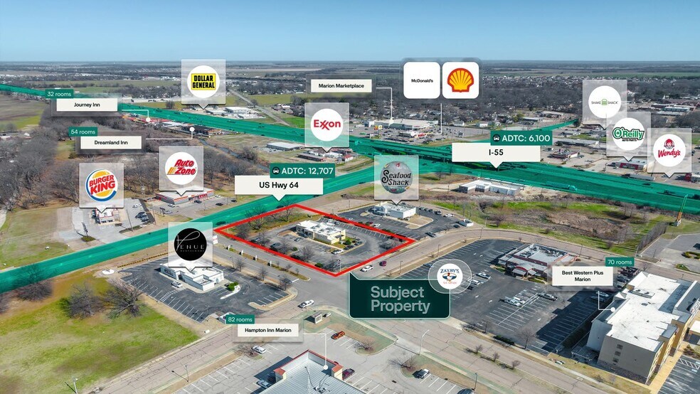 Surmount is pleased to present the exclusive listing for a Zaxby's located at 306 Bancario Road, Marion, AR 72364. The site consists of roughly 3,258 rentable square feet of building space on an estimated 1.07-acre parcel of land. Zaxby's is subject to a 20-year Triple Net (NNN) lease, which commenced 1/15/2022. The current annual rent is $173,893 and has scheduled increases of 2.00% Annually Starting Year 7.
