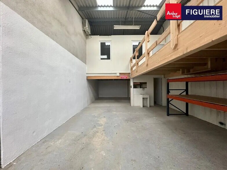 ARTHUR LOYD FIGUIERE IMMOBILIER vous propose, au nord d'AIX EN PROVENCE, dans un ensemble immobilier, deux entrepôts de 120 m², dont 30 m² de bureaux aménagés, climatisés et fibrés. Bâtiment en bardage sur structure métallique, profitant de 4 à 6,5 m et d'une porte coulissante de 4 m (H) x 6 m (L). 2 places de parking sont attribuées à chaque lot. Disponibles immédiatement à la location. 30 m² de bureaux en mezzanine par lot : - sol parquet stratifié - éclairage spot - climatisation splits muraux - fibre optique 2 places places de parking par lot Surface RDC : 90 m² Haut. libre min. ss poutre : 4 m Haut. libre max. ss poutre : 6,5 m Accès bâtiment : tout type de camion Nbr de portes plain pied : 1 Equipements entrepôts : - sol dalle béton - éclairage néons + zénithal - sanitaire + 1 point d'eau par lot Ossature : Métallique Murs périmétriques : Métallique Couverture : Fibrociment