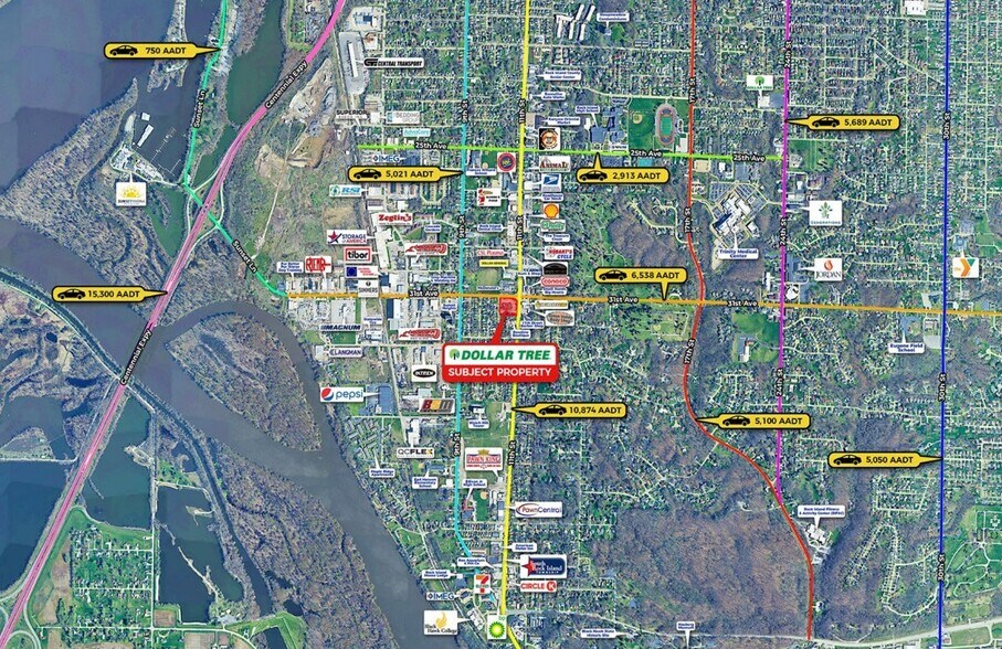 Située à l'intersection à signalisation dure de la 31e avenue et de la route 67, la propriété bénéficie d'une grande visibilité pour plus de 17 412 véhicules par jour. La propriété bénéficie également d'une excellente accessibilité avec de multiples points d'entrée et de sortie. Les environs abondent de nombreux détaillants nationaux, dont McDonald's, Dollar General, O'Reillty's Auto Parts, Circle K, 7-Eleven et bien d'autres. De plus, la propriété est idéalement située à proximité de nombreux complexes d'appartements et à moins de 1,6 km de UnityPoint Health - Trinity Rock Island Hospital, un établissement à service complet de 276 lits.