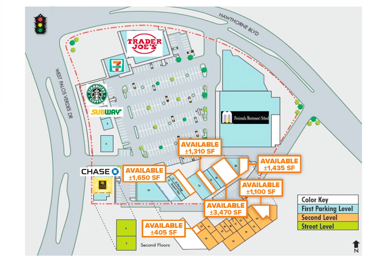 Plusieurs unités de vente au détail et de bureaux disponibles dans le grand centre Trader Joe's Anchored Neighborhood à Prime Rancho Palos Verdes. La propriété offre une visibilité sur la grande rue, des panneaux de signalisation sur le monument bien en vue, un grand stationnement dans un vaste terrain sur place (320 places de stationnement) et une vue sur l'océan partout ! Le centre accueille divers colocataires nationaux et régionaux A+, dont Trader Joe's, Starbucks, Subway, Yellow Vase, 7-Eleven, Peninsula Montessori School et plus encore ! Les logements sont disponibles pour occupation immédiate. Site situé à l'intersection principale avec signalisation du boulevard Hawthorne et de la promenade Palos Verdes Ouest.