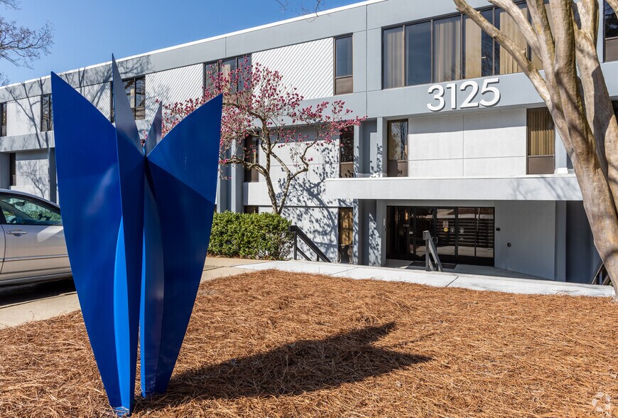 - 3125 Poplarwood Court, the Aspen building of Highwoods Office Park, presents renovated private coworking spaces starting at 171 square feet.