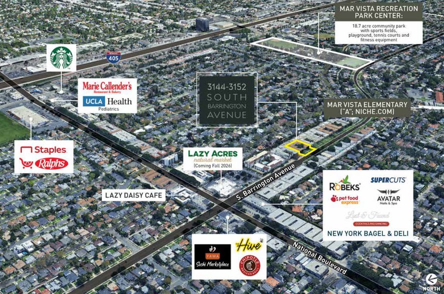 The property is walking distance to A-rated Mar Vista Elementary School, The Hive, Lazy Daisy Café, Chipotle, Robek’s, Yama Sushi Marketplace and the Future Lazy Acres Natural Market (Coming Fall 2026). The Grandview/Venice Hub with Numerous Restaurants, Cafes, and Local Retailers is within minutes. The location offers easy access to the 10 Freeway, and 6 Minutes to the Expo Line (Expo/Bundy station).