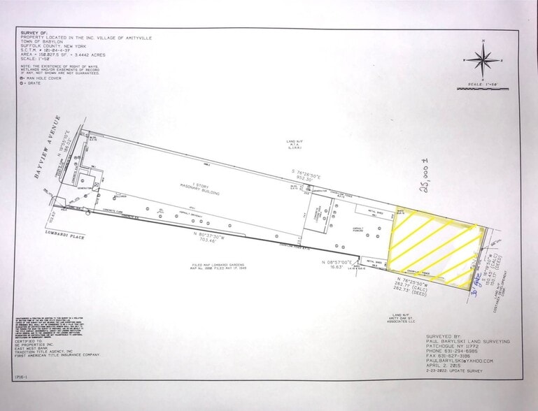 Flat, rectangular parcel with dimensions of approximately 206 feet by 123 feet. Suitable for vehicle storage or use as a contractor’s yard with town permits. Conveniently located within the Village of Amityville with surrounding commercial activity. Accessible from major roadways providing ease of transportation and logistics. Flexible outdoor usage to accommodate a range of operational needs.