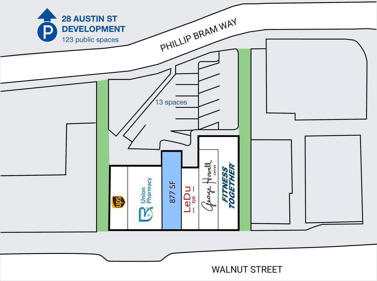 - Space Available: 877 SF - 5,855 SF storefront retail property located on Walnut Street in Newtonville, MA - Newtonville is a densely-populated, affluent neighborhood in Newton approx. 7 miles west of Boston - Located in walking distance from Newtonville MBTA commuter rail stop on the Framingham/Worcester line with approx. 152,000 annual weekday riders - Includes a private parking lot in the rear with 13 spaces and located adjacent to 28 Austin Street mixed-use development to include 123 public parking spaces - Less than 1/2 mile from Newton North High School campus with 2,100+ students - Area retailers: Star Market, CVS, Starbucks, Cabot’s Ice Cream, Bank of America, Chipotle