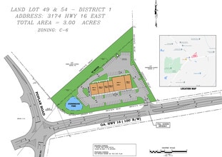 Prélocation d'un nouvel immeuble de bureaux de +/- 15 000 pc sur +/- 3 acres +/- 1 500 — 5 000 SF disponibles Accès facile au centre-ville de Newnan et Senoia Nouvelle construction ou construction attrayante pour convenir +/- 5 milles jusqu'à I-85 et Piedmont Newnan Hospital Coin du chemin Poplar et de la route 16 Est Taux de location NNN : Demander À proximité de East Coweta High School & Poplar Road Elementary Nombre de trafic : +/-8 370 VPD Zoné C-6 Ville : Sharpsburg Comté : Coweta