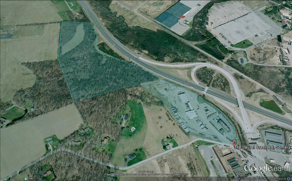 À louer ou à construire sur mesure. Jusqu'à 44 acres à la sortie 110 de l'autoroute PA à péage à l'intersection de l'I-70 et de l'I-76 à louer ou à construire sur mesure. Plus de 2 500 pieds de façade de l'autoroute à péage avec accès facile par la sortie.