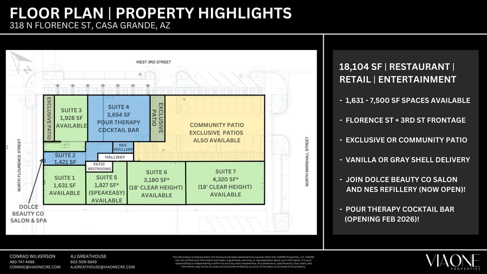 - SUITE 3 | 1,928 SF | HARD CORNER ENDCAP - 813 SF EXCLUSIVE PATIO - BRIGHT NATURAL LIGHT - EXPOSED HARDWOOD CEILING - EXPOSED MASONRY WALLS - FLORENCE ST + 3RD ST FRONTAGE - GRAY SHELL DELIVERY - IDEAL FOR RESTAURANT, COFFEE SHOP, ICE CREAM SHOP, BEER/WINE BAR, CIGAR LOUNGE