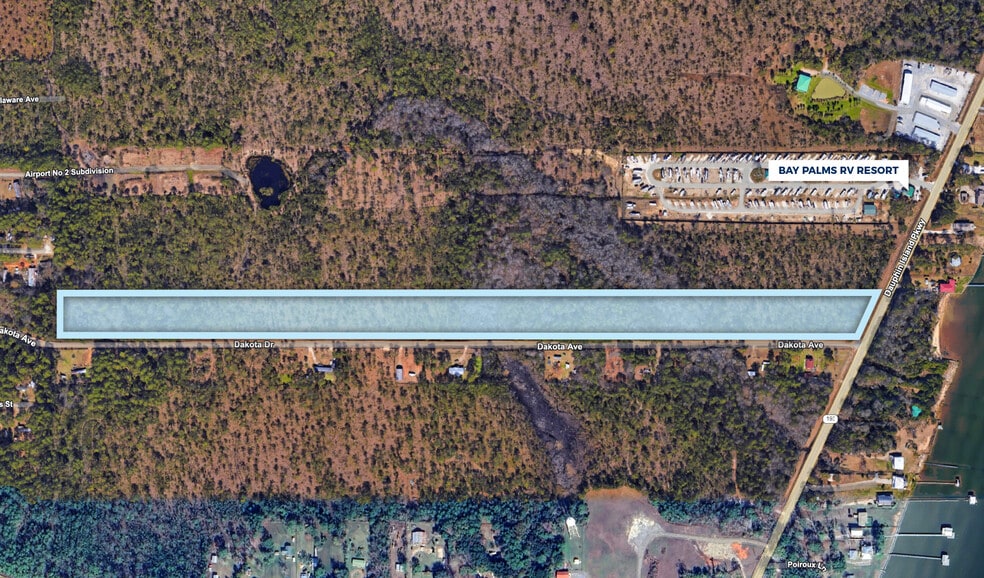 17.5+ acre corner lot just south of Bay Palms RV Resort. Excellent development potential with easy access to Dauphin Island, Bayou la Batre and Mobile.