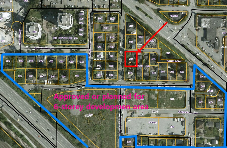 Site de DÉVELOPPEMENT/ASSEMBLAGE DE TERRAIN – Coquitlam West au sud de l'autoroute Lougheed Opportunité rare à Coquitlam West, au sud de l'autoroute Lougheed, dans un corridor de croissance axé sur le transport en commun en pleine évolution, à proximité des principales routes de transit et du SkyTrain Evergreen. La propriété est désignée pour un réaménagement de densité moyenne, avec des bâtiments de 4 à 8 étages selon le Plan d’urbanisme (OCP), avec un coefficient d’occupation du sol (FAR) d’environ 2,4 et un potentiel de densité plus élevée sous réserve de confirmation par la Ville. Situé dans une zone clé de croissance avec un fort élan de réaménagement, ce site offre un excellent potentiel à long terme et est idéal pour les développeurs ou l’assemblage de terrains dans l’un des pôles de transformation urbaine les plus actifs de Coquitlam.