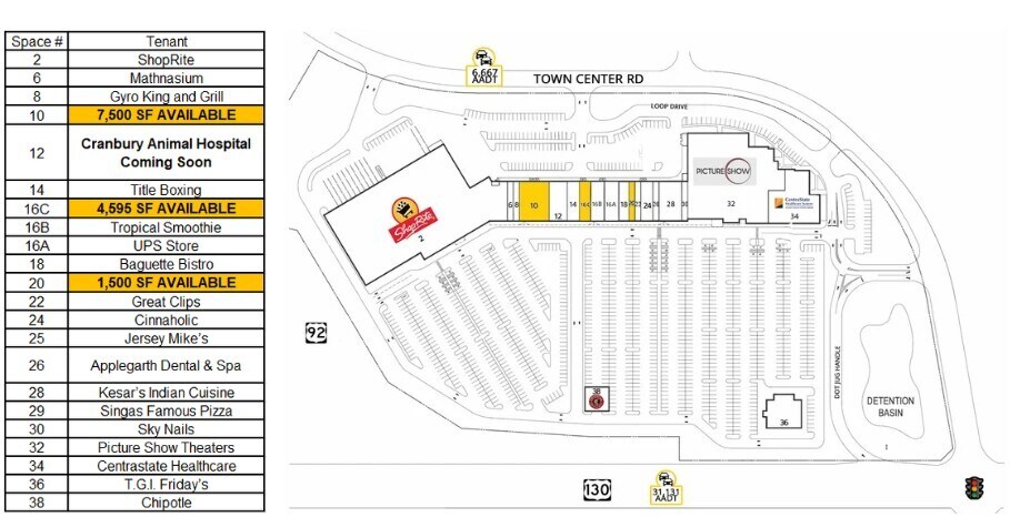 Town Center Plaza 319 US Highway 130 1 500–13 595 pi² d'espace disponible • Commerce de détail • East Windsor, NJ 08520