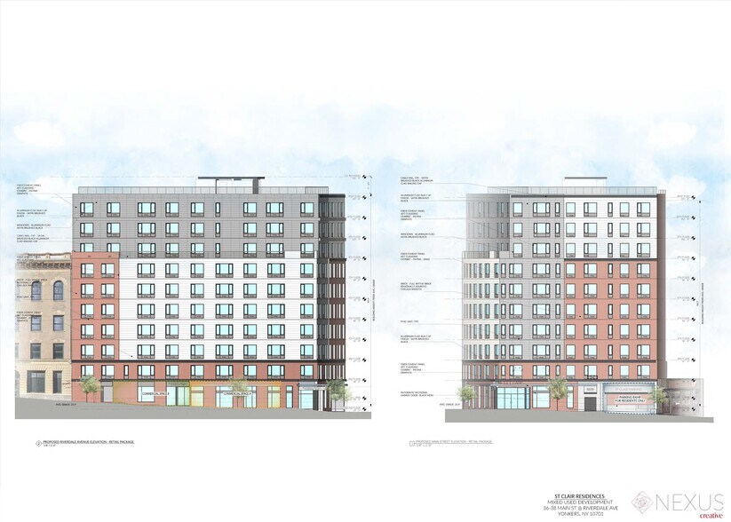 629 SF street-front commercial space available in new 10-story, 76-unit luxury residential building - St. Clair Residences. Construction nearly finalized. Located on the corner of Main Street and Riverdale Avenue in the heart of dynamic revitalization of historic downtown Yonkers Waterfront. Fantastic frontage on busy Riverdale Avenue. Gas available for food use. Bus stops located directly in front of site. Walking distance to Metro-North and Amtrak. Near great restaurants and all Yonkers Waterfront amenities including Getty Square, Starbucks, Fitness Factory, USPS, 55 Main St Parking Garage, Zuppa, Rivertown Liquors, CitiBank, One Pier Steakhouse, Yonkers Brewing Company, Chase, FoodLab, TaqueRio Taco Bar, Philipse Manor Hall State, Van Der Donck Park, and Yonkers Riverfront Library among many others!