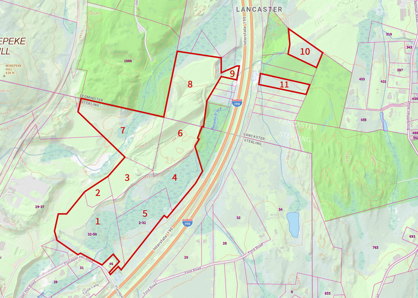 ±135.96 acres, across 11 parcels, of developable land in Sterling and Lancaster, Massachusetts.