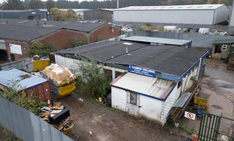 The main warehouse offers a maximum working height of approximately 2.48m and an eaves height of 3.11m, with an additional lean-to section featuring a manual roller shutter door (3m high x 3m wide) and an eaves height of 3.4m. To the south-western boundary, there is also a separate open-fronted warehouse, providing useful covered external storage.