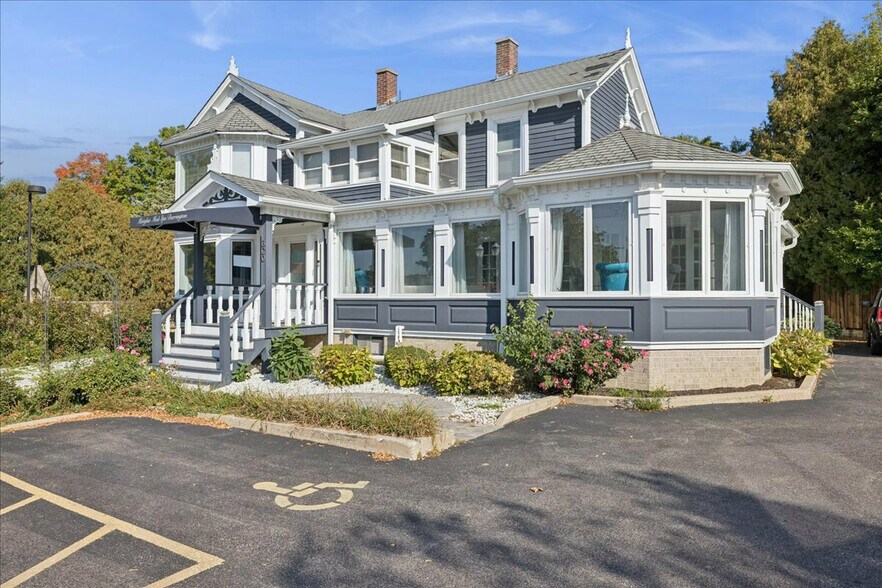 320 E Main Street offers a unique investment or owner-user opportunity in the heart of Downtown Barrington. This beautifully renovated mixed-use property combines modern functionality with historic charm, featuring approximately 2,000 square feet of updated commercial space on the main floor, previously utilized as a Medi-spa. The commercial area includes a welcoming reception, six private offices, two restrooms, a kitchenette, and access to a rear porch, making it ideal for professional or wellness services.