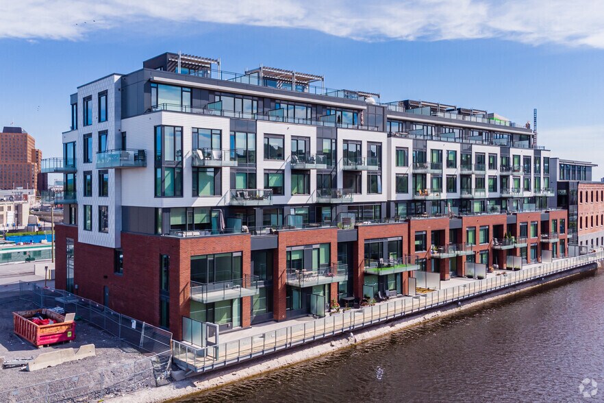 Suites commerciales au rez-de-chaussée au pied de l'immeuble résidentiel « Kanaal » à six niveaux - disponibles sous forme d'espaces contigus ou détruits selon les besoins du locataire. S'ouvrant sur la vibrante place Head Street, au cœur de l'île Chaudière, les espaces commerciaux du bloc 205A jouent un rôle de premier plan dans le domaine public de Zibi. Les plafonds à double hauteur et les vitrines vitrées offrent aux détaillants une vitrine attrayante dans le bâtiment d'inspiration hollandaise, tandis que les accents de design industriel rendent hommage au patrimoine industriel du site de Zibi.