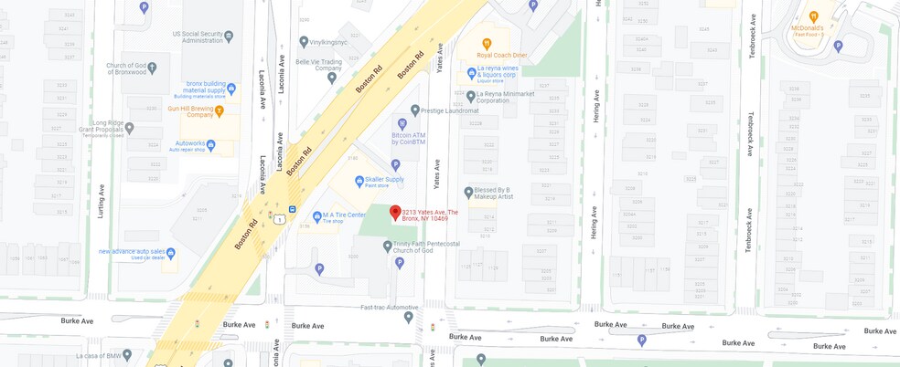 Ce terrain vacant offre d'excellentes possibilités de développement. Il est situé dans une zone à forte densité de population et connaît un volume de circulation quotidien élevé, ce qui en fait un bon endroit pour un immeuble de vente au détail. Le lot est situé dans le district de zonage C8-1. La propriété se trouve à proximité de plusieurs restaurants et magasins. La gare Williams Bridge est située à proximité. Les stations de métro Gun Hill rd, Burke Av et Allerton Av se trouvent également à proximité. Il y a plusieurs gares d'autobus dans les environs. La promenade Hutchinson et Bronx River Parkway se trouvent à proximité de la propriété. Elle est entourée de nombreux quartiers résidentiels. La propriété est située à proximité de nombreux bâtiments résidentiels et commerciaux.