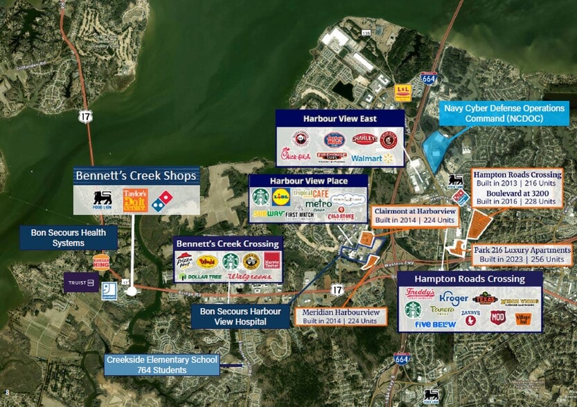 The asset is surrounded by strong retail, dense residential growth, and major employment drivers, including the Joint Suffolk DoD compound, Bon Secours, Sentara, Sysco Foods, and other regional employers. With high household incomes, limited new supply, multiple full-movement access points, and highly leasable space including an end-cap drive-thru, Bennett’s Creek Shops offers durable cash flow and long-term growth in one of Hampton Roads’ most desirable retail corridors.