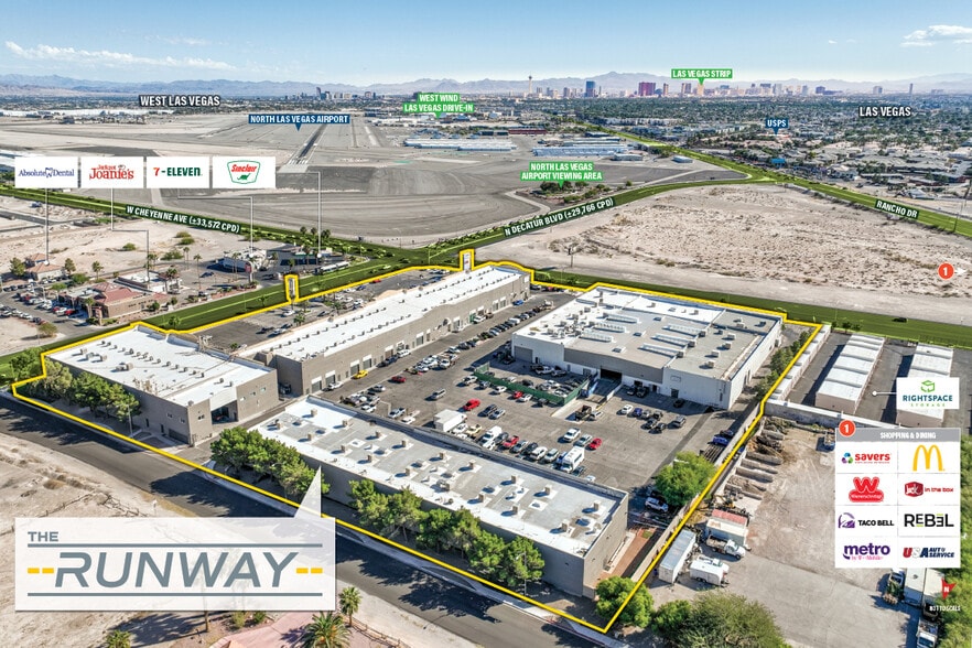 * Desirable Las Vegas Location – Quality retail and industrial investment property located in a dense, infill location with more than 183,200 residents (AHI: $87,800) within 3 miles. Furthermore, the Runway is situated just off the northwest corner of W Cheyenne Ave (±33,572 CPD) & N Decatur Rd (±29,766 CPD) placing it in a prime location to take advantage of the growth the Las Vegas area has seen over the recent years