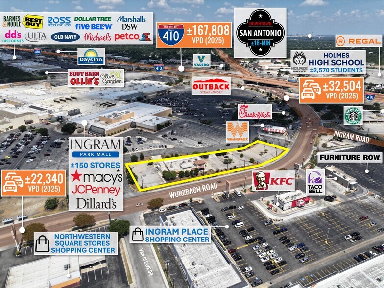 - 22,340 VPD Traffic Counts on Wurzbach Rd and Just Off Ingram Rd (+32K VPD) | Near I-410 (+167K VPD)