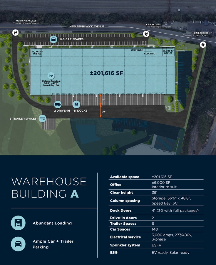 New Brunswick Warehouse Rahway, NJ 07065 76 202–277 818 pi² d'espace disponible • Industriel