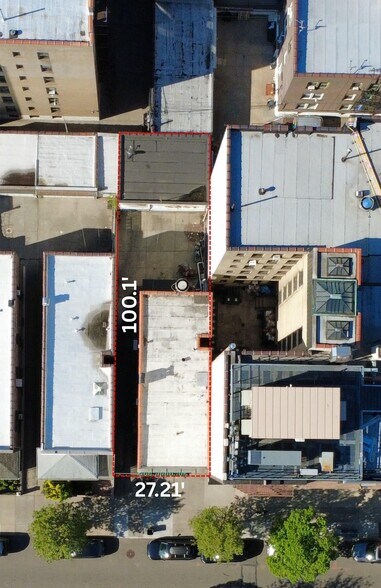 The lot has 27.21' of frontage and 100.1' of depth. The rectangular lot size will create efficient floorplates in the future building.