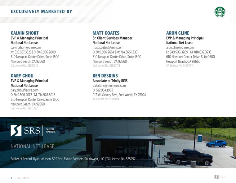 SRS National Net Lease is pleased to offer the opportunity to acquire the fee simple interest (land & building ownership) in an NN leased, Starbucks investment property located in Gatesville, Texas. The tenant, Starbucks, recently signed a brand new 10 year lease with 4 (5-year) options to extend, demonstrating their commitment to the site. The lease features 10% rental increases every 5 years throughout the initial term and at the beginning of each option period, steadily growing NOI and hedging against inflation. The lease is NN with minimal landlord responsibilities making it an ideal, low management investment opportunity for a passive investor.