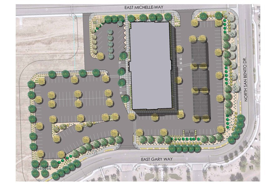 47,000 SF two-story building • 5 : 1,000 RSF Parking Ratio • Gurney Sized Elevator • Convenient surface parking (covered available) • Future entrances of Higley Rd, East Michelle Way, and East Gary Wa