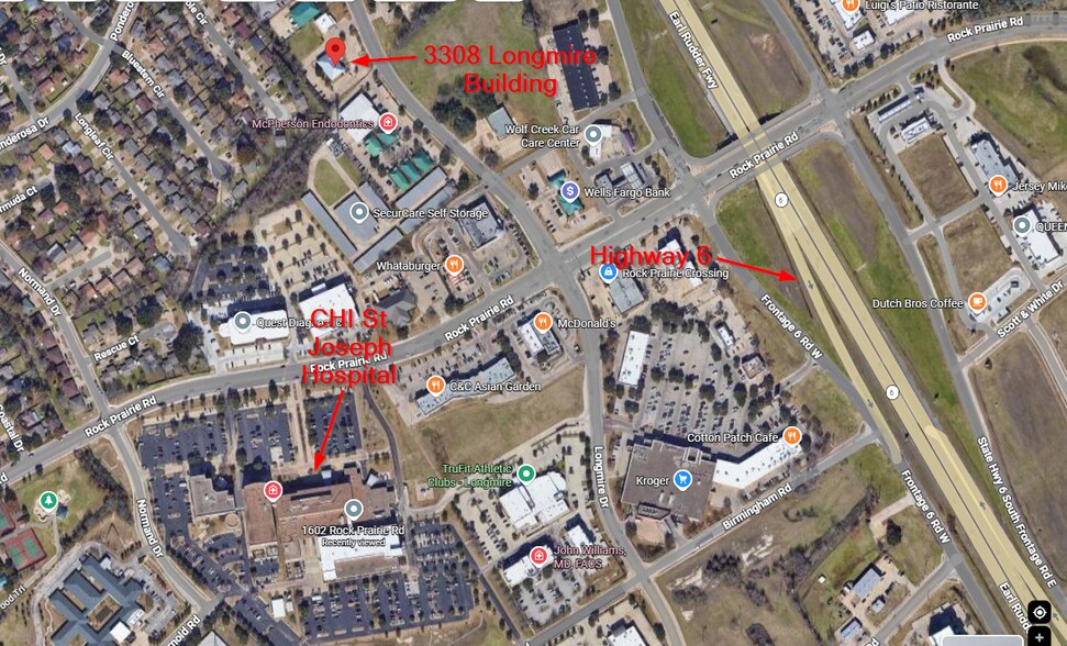 3308 Longmire Drive is a single-story commercial office building strategically positioned in the highly desirable Medical and Professional Services District of College Station, Texas. Constructed in 2005, this well-maintained property offers approximately 5,221 square feet of functional interior space on an expansive 1.11-acre lot (±48,508 SF) – providing excellent visibility, accessibility, and ample parking opportunities for tenants and visitors. The building’s layout and footprint are ideally suited for medical, dental, therapeutic, professional, or administrative office users, or a blend of service-oriented tenants. With its location along Longmire Drive, the property benefits from steady daily traffic and strong proximity to major healthcare providers, including nearby specialty clinics and medical office parks, enhancing its appeal to healthcare practitioners seeking a central Brazos County address.