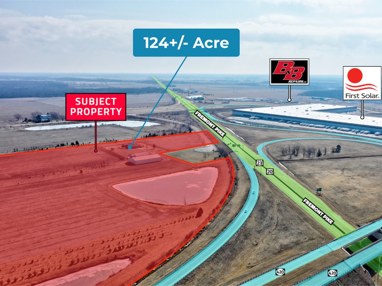124± acre industrial development site available at 0 Fremont Pike in Perrysburg, Ohio. Located less than 1 mile from the Ohio Turnpike (I-80/90) and minutes from I-75, the property offers direct regional access across the Midwest and is well suited for industrial park development, manufacturing, logistics/distribution, data center development, mixed-use commercial, or long-term investment.