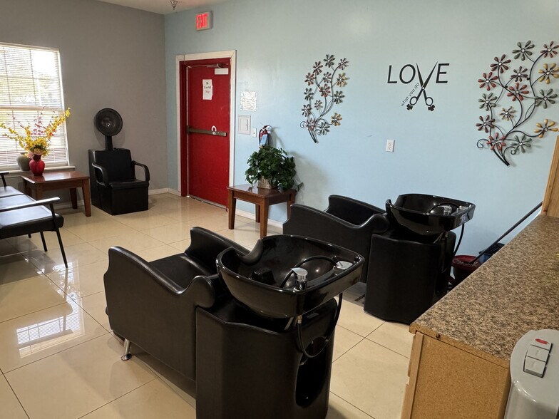 - Salon-ready features with two shampoo bowls and supporting plumbing infrastructure.