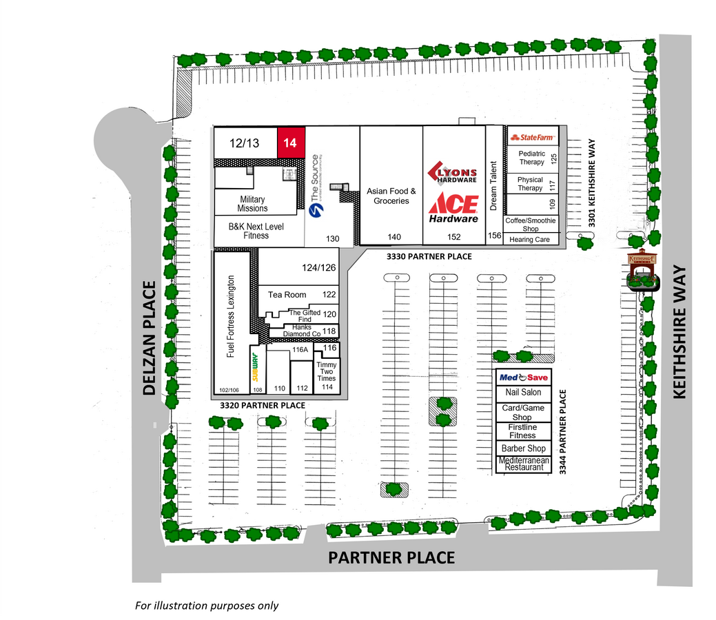 NAI Isaac est heureux de présenter Keithshire Place, un centre de vente au détail et de bureaux de 104 974 pc situé du côté sud-ouest de Lexington. Situé à environ 1½ mille du boulevard Man O' War, Keithshire Place se trouve juste à côté du chemin Clays Mill, à Keithshire Way. Adjacent au développement de Wellington, le centre prospère grâce à un solide soutien résidentiel dans une zone commerciale très peuplée. Keithshire Way est la route frontalière sud reliant le chemin Reynolds au chemin Clays Mill et achemine la circulation vers Meijer, Target et le centre commercial régional de Lexington, Fayette Mall. Keithshire Place offre également un accès pratique à l'aéroport Blue Grass, au centre-ville de Lexington, aux quartiers résidentiels haut de gamme, aux bureaux, aux hôtels, aux institutions financières et à d'autres commodités.