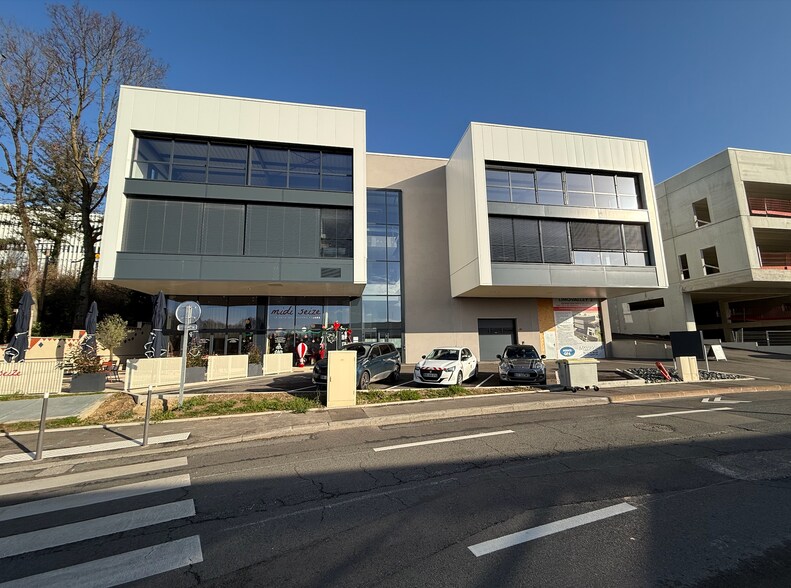 L'agence GF4 vous propose à la location et/ou vente plusieurs surfaces de bureaux, locaux d'activité et showroom au sein d'un bâtiment neuf sur trois niveaux en plein coeur de la Techlid à Limonest. On retrouve au RDC le restaurant MIDI SEIZE qui amène beaucoup de visibilité au bâtiment. On retrouve aussi l'atelier de l'enseigne LA COMPAGNIE DES ATELIERS. Il reste une dernière cellule en RDC de 156m², idéale pour un showroom/atelier avec surfaces de bureaux possibles en mezzanine. L'accessibilité et la visibilité sont idéales. Au premier étage, il y a un bureau d'étude pharmaceutique ainsi qu'une crèche Pour finir on retrouve les bureaux de la société BIOWELS au dernier étage du bâtiment. Il reste 2 lots disponibles au R+1 du bâtiment: La partie droite du plateau bénéficie d'une terrasse privative d'environ 20m². Cet espace offre une vue magnifique sur Techlid grâces aux grandes baies vitrées (exposition SUD OUEST). Le plateau est livré BRUT hors d'eau/ hors d'air avec fluides en attentes. L'ensemble des menuiseries extérieures sont posées. La hauteur sous dalle est de 2m80. Les parties communes sont entièrement équipées avec : ascenseur, menuiseries intérieures, sol, faux plafond, sanitaires dans les espaces communs, climatisation/chauffage, VMC. Un total de 15 places de Parking peuvent être attribuées en fonction de la surface de bureaux choisie. L'extérieur est livré avec parking (enrobée) et places nominatives, éclairages , espaces verts et local poubelle. Ces surfaces sont aussi disponibles à l'achat, n'hésitez pas à me contacter pour toute demande.