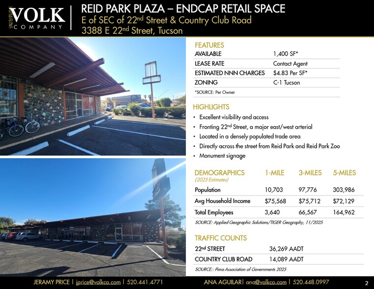 Excellent visibility and access • Fronting 22 nd Street, a major east/west arterial • Located in a densely populated trade area • Directly across the streetfrom Reid Park and Reid Park Zoo • Monumentsignage