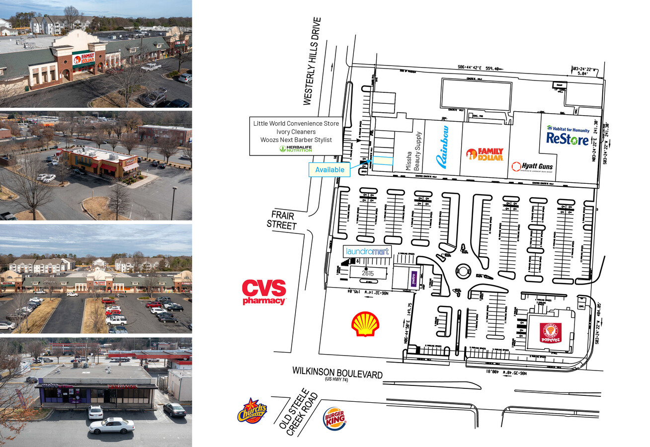 Westerly Hills Shopping Center 3400-3500 Wilkinson Blvd 680 pi² d'espace disponible • Commerce de détail • Charlotte, NC 28208