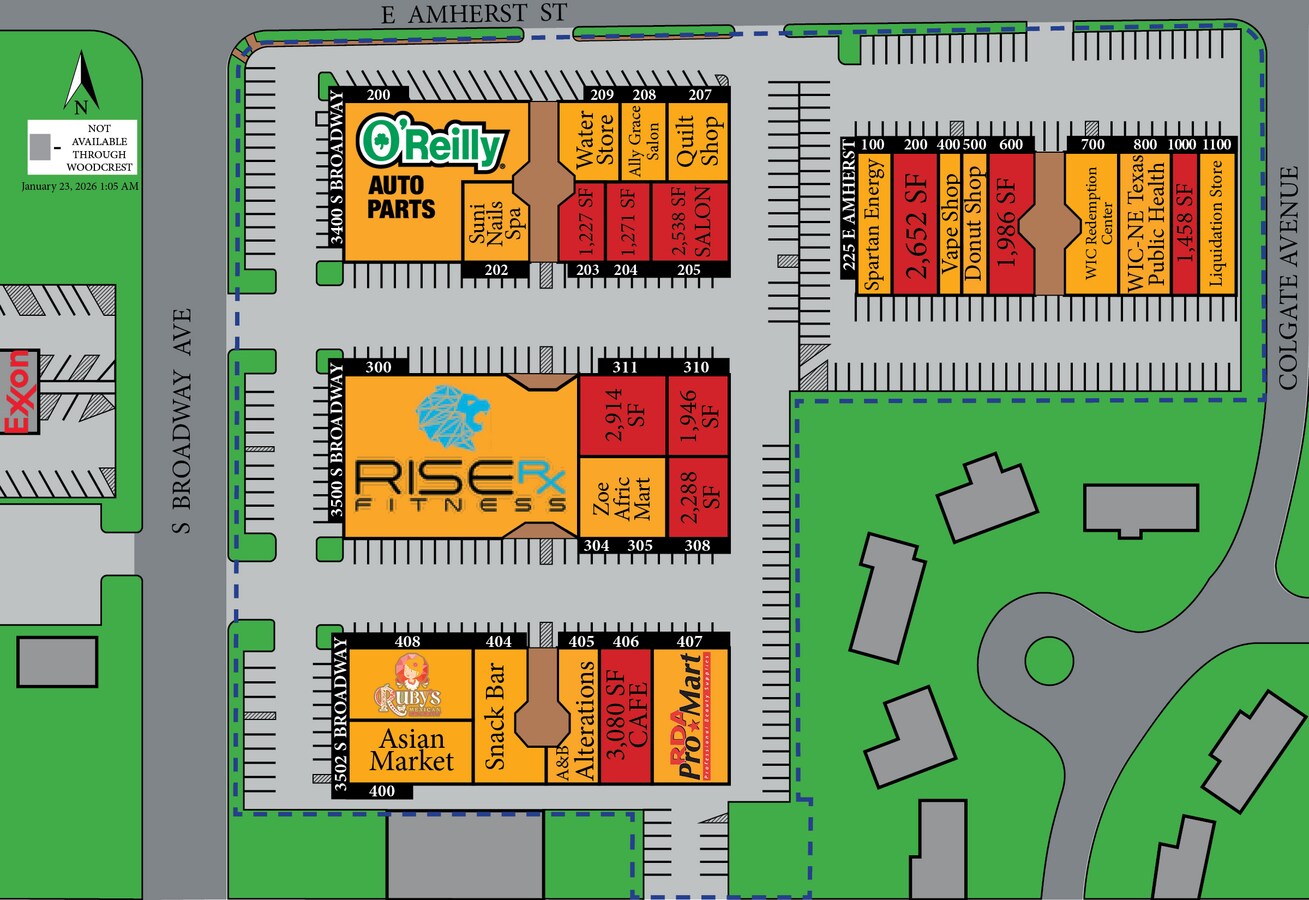 - Join a synergistic roster of tenants, including Rise RX Fitness, O'Reilly Auto Parts, RDA Pro Mart, Ruby's Mexican Restaurant, and Suni Nail Spa.