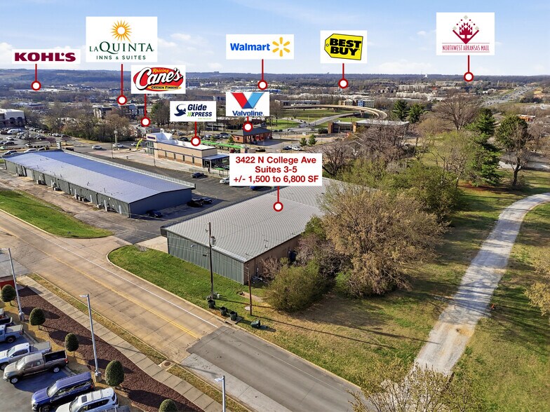 Versatile +/- 3,288 SF space available for lease in a high-visibility location off N College Ave, which see approx. 33,000 VPD and offers convenient access to the US-71 on-ramp. Currently utilized as a church, the property is well suited for a wide range of uses including professional office, medical or therapy practice, retail, childcare, etc. The layout features 5 individual rooms that can function as private offices, conference rooms, patient rooms, or storage areas, along with 2 restrooms. An expansive open area provide flexibility for collaborative workspace, therapy activities, children's play areas, or event space and features a loft area. Additional amenities include a kitchen enhancing convenience. With its adaptable floor plan, strong traffic counts, and strategic location, this property presents an excellent opportunity for businesses seeking both visibility and flexibility.