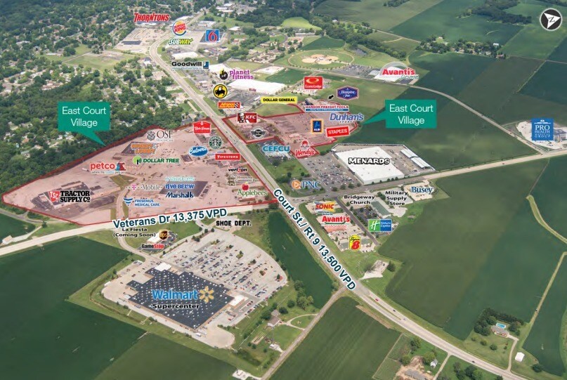 Power Center situé à l'intersection de la rue Court et de la route 9 et de la promenade Veterans, qui se connecte à d'autres marchés importants du centre de l'IL.
