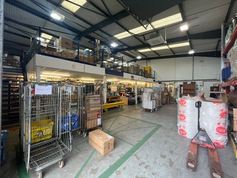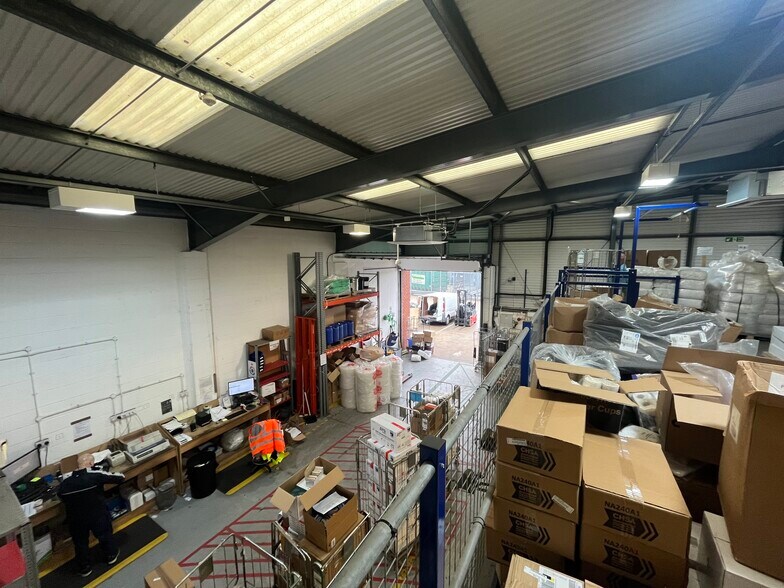 The property is an end terrace industrial unit providing warehouse space with a mezzanine, first floor offices, a meeting room, and storage accommodation, served by a level access loading door, 15 car parking spaces, and a 3phase power supply, with eaves of 5.52m. 10 car parking spaces to the front of the property, with an additional 5 to the rear
