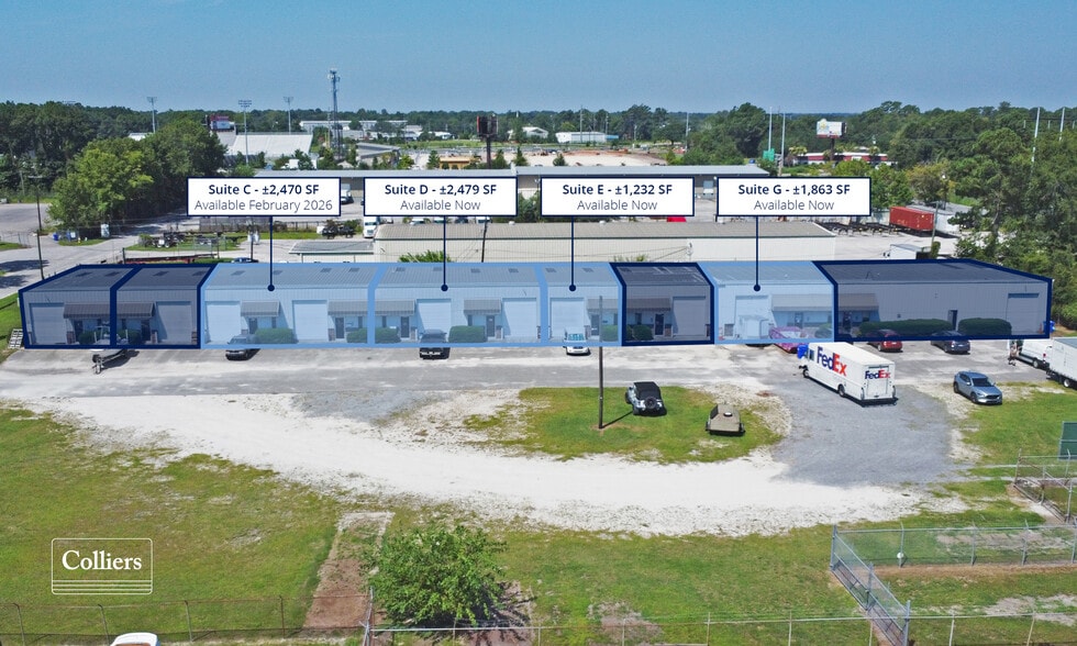 3430 Buffalo Avenue is a 15,051 SF flex building located on a 2.06-acre M-1 Light Industrial–zoned parcel in the City of North Charleston. The building is divided into eight (8) suites ranging from 1,232 SF – 3,237 SF, each featuring single-phase 200 Amp electrical service, one or two drive-in doors per unit, and fully air-conditioned interiors. Three (3) suites are available for immediate occupancy. The property also includes 1 acre of industrial outdoor storage for lease, with the flexibility to lease as little as 0.25 acres. This setup is ideal for contractors, service providers, or any users needing a mix of conditioned workspace and outdoor storage.