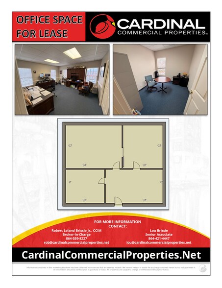 Approximately ±631 SF of second-floor office space is available for lease in EastPark at Pelham. The suite offers a flexible layout with either four offices or three offices and a reception area, within a multi-tenant office building. The property fronts Pelham Road with exposure to approximately 25,300 VPD, providing excellent visibility and easy access. Common area amenities include restrooms on both floors and water fountains, along with ample on-site parking. The space is well suited for office or professional services and is conveniently located near I-85 and nearby retail. $1,100 per month. Tenant responsible for internet and cleaning